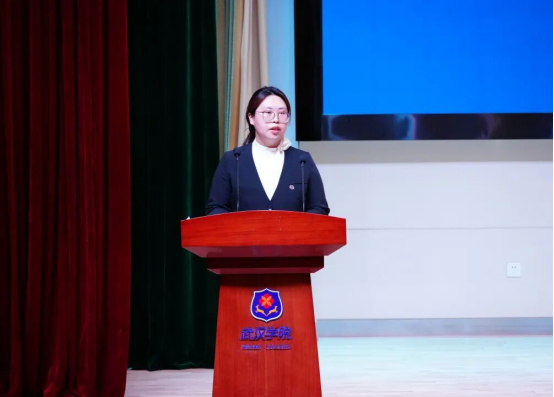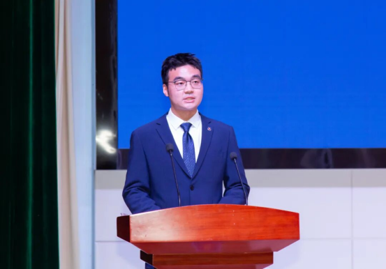 优秀学生代表、国家奖学金获得者信息工程学院学生张嘉睿发言,他回顾了大学生活的挑战与收获,积极参与志愿服务活动,用自己的实际行动回馈社会。表示要将个人理想融入国家需要,做时代的建设者;在未来,脚踏实地不断超越自我,为中华民族伟大复兴贡献青春力量。