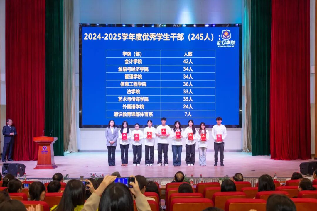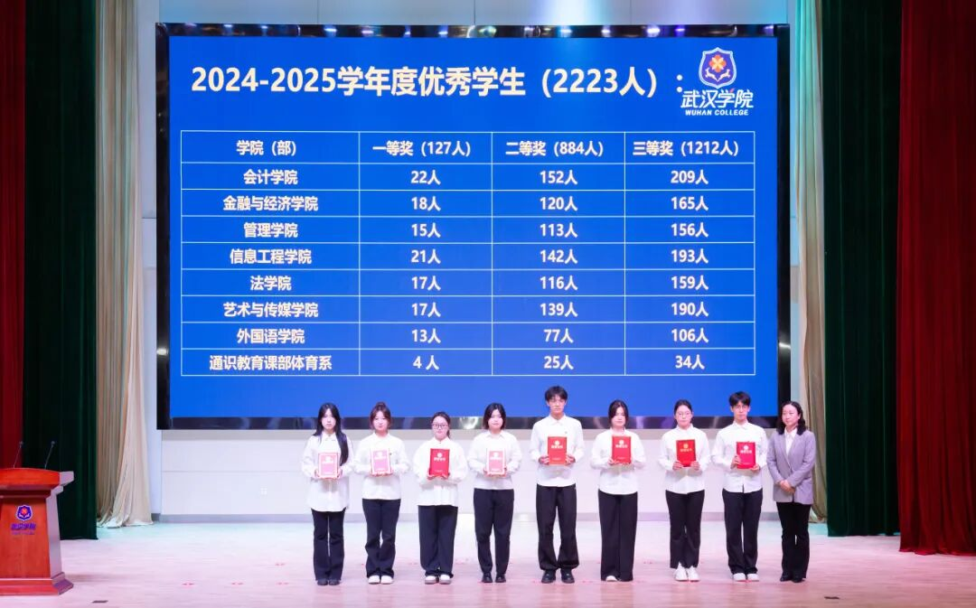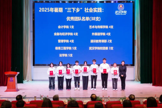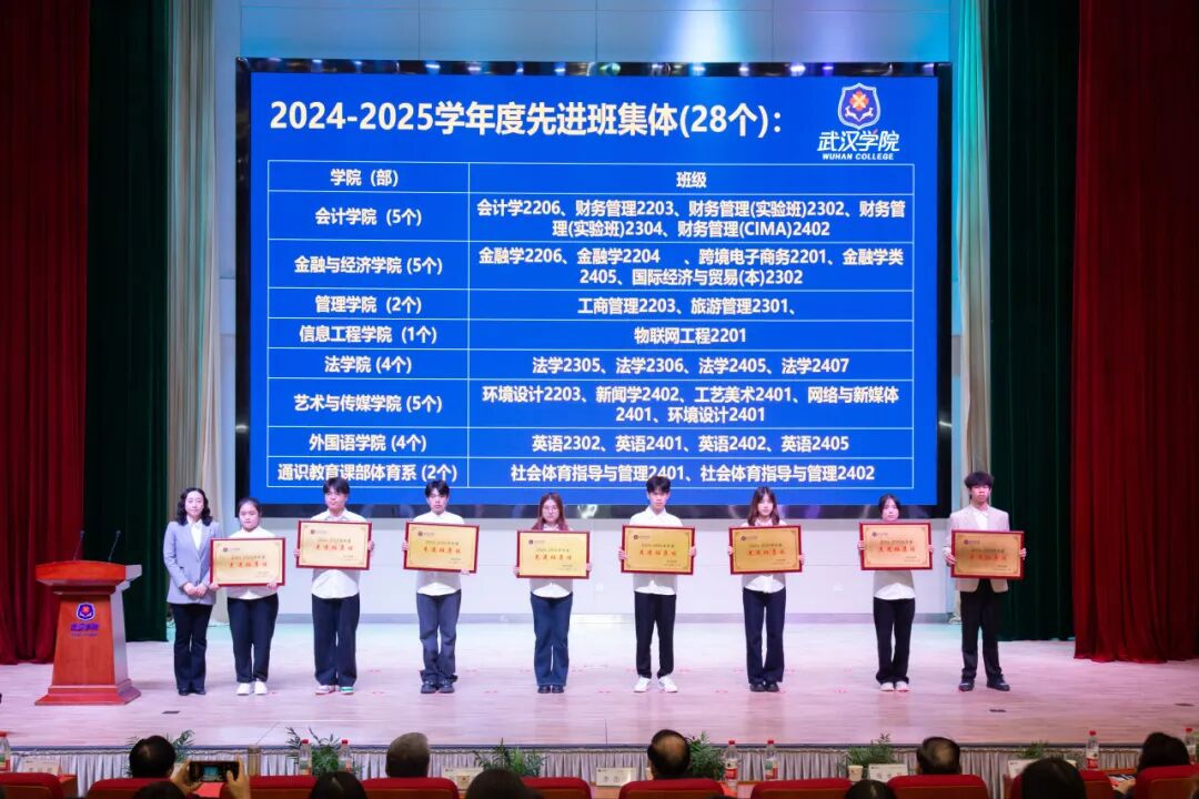 颁奖环节,先后颁发了2025年文明社团,2025年暑期“三下乡”社会实践优秀团队、优秀指导教师、优秀个人,2024-2025学年先进班集体、优秀学生和优秀学生干部,2025年团中央志愿服务专项团队,2025年国家级大学生创新创业训练计划项目,2024-2025学年国家奖学金,2024-2025学年度优秀班主任,2024-2025学年度优秀辅导员奖、优秀学生工作管理奖、优秀团队贡献奖、突出表现(单项)奖,2025年招生就业先进单位和个人等19个奖项,获奖个人和获奖单位代表依次上台领奖。