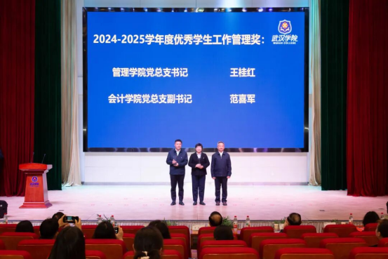 表彰大会上,校党委书记陈祖亮致教授辞。他代表学校董事会、校党政向获奖师生表示祝贺。他指出,过去一年,学校坚持以习近平新时代中国特色社会主义思想为指导,全面贯彻党的教育方针,在教育教学、科研、学风建设、创新创业、社会实践等方面取得丰硕成果,全体学工干部和学生在党建思政、安全稳定、文明校园创建及学生素质提升中发挥了重要作用。他希望受表彰师生珍惜荣誉、再接再厉,发挥示范引领作用,并号召全校师生形成争当先进的氛围,让追求卓越成为学校的鲜明底色。他强调,未来要结合“十五五”强国建设蓝图,抓住教育强国机遇,坚持正确办学方向,落实立德树人根本任务,强化数字赋能,深化教学改革,通过高质量发展培养德智体美劳全面发展的栋梁之材,服务地方与国家建设。最后,他勉励学工系统师生勇担使命、奋发有为,为谱写学校高质量发展新篇章而努力奋斗。