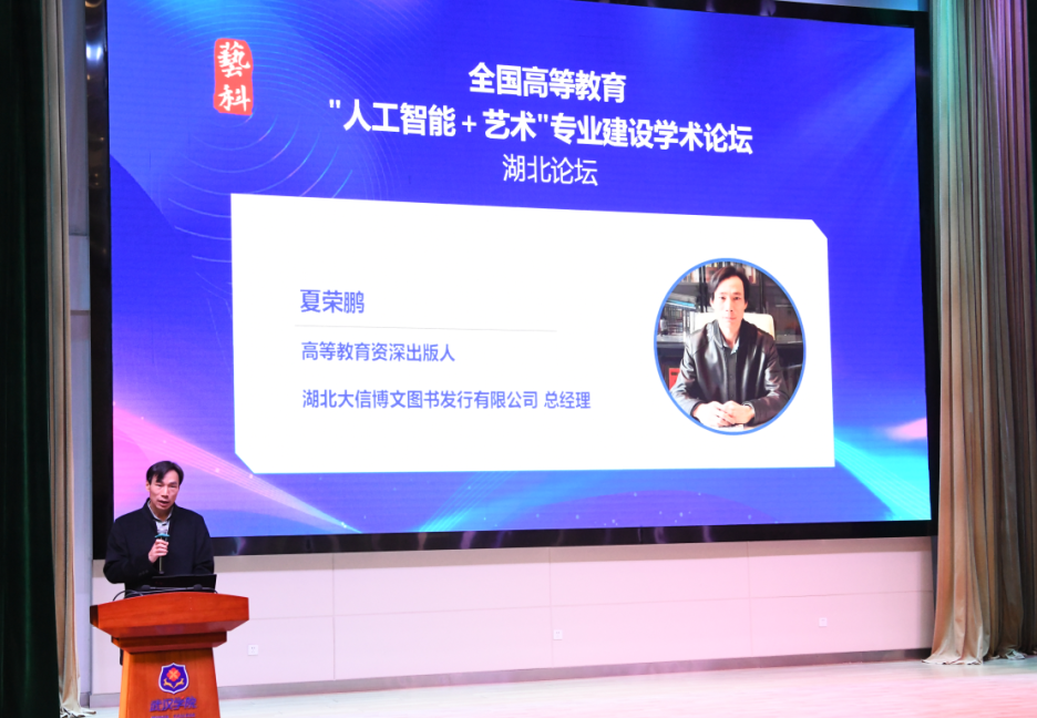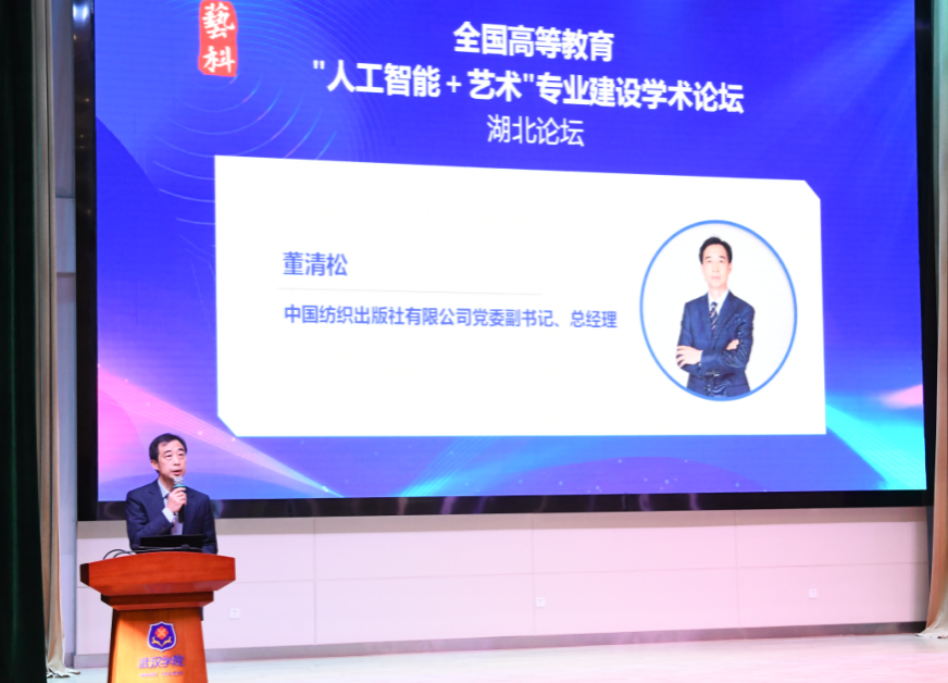 11月16日,由中国纺织出版社有限公司主办,PG电子官方网站与湖北大信博文图书发行有限公司承办的全国高等教育“人工智能+艺术”专业建设学术论坛(湖北论坛)在PG电子官方网站刘炽平报告厅隆重举行。本次论坛聚焦“人工智能+艺术”专业建设的路径创新与学科重构,吸引了来自清华大学、中央美术学院、上海工程技术大学等全国70余所高校的240余名专家、学者及行业代表参会。