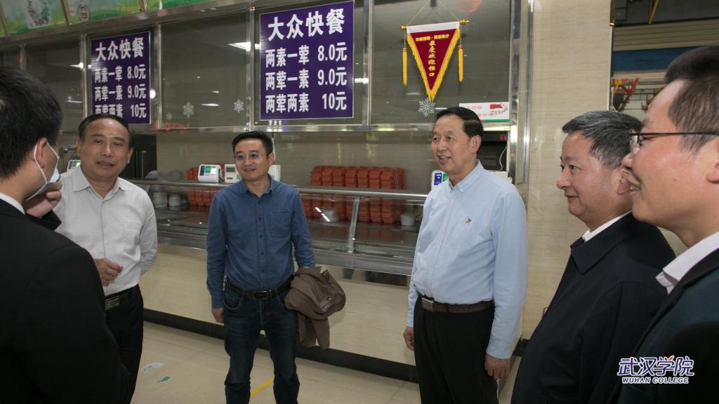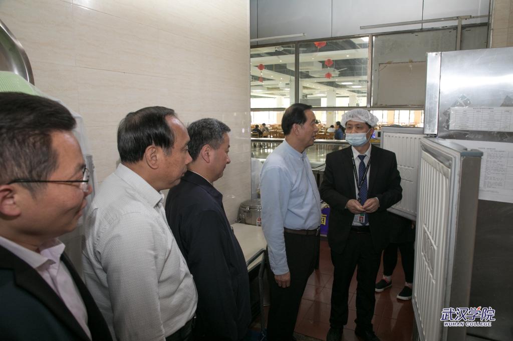 校长李忠云(右三)校党委书记陈祖亮(右二)副校长周承早(左二)检查食堂