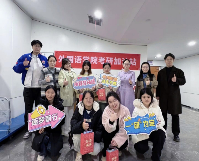 外国语学院将关怀送到备考一线,在图书馆1楼考研自习区设立“考研加油站”。副院长文声芳、党总支副书记肖琴及全体辅导员亲临现场,细致询问学子复习进度与生活情况,介绍学校考研支持政策,勉励大家稳住心态、科学备考,注意劳逸结合,以最佳状态迎接考试。