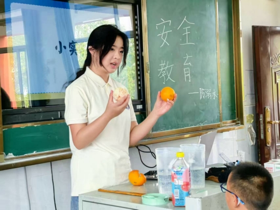周怡蕊的“攀登”,更包含着向下的扎根与向外的传递。一次校青协“快乐学堂”的志愿经历,成为她深耕公益的起点。分别时,一个小女孩怯生生地问:“姐姐,下周我还能见到你吗?”这句充满依赖的询问,深深触动了她。她至今记得那个起初不敢表达、只会默默站在身后举手的小女孩,如何在一次次陪伴下变得开朗自信。这份触动让她决心将能量传递给更多人。她不仅长期参与公益教学,更是投身于暑期“三下乡”支教。累计324小时、参与20余项志愿活动,这份坚持让她的攀登人生增添了服务社会的温度。