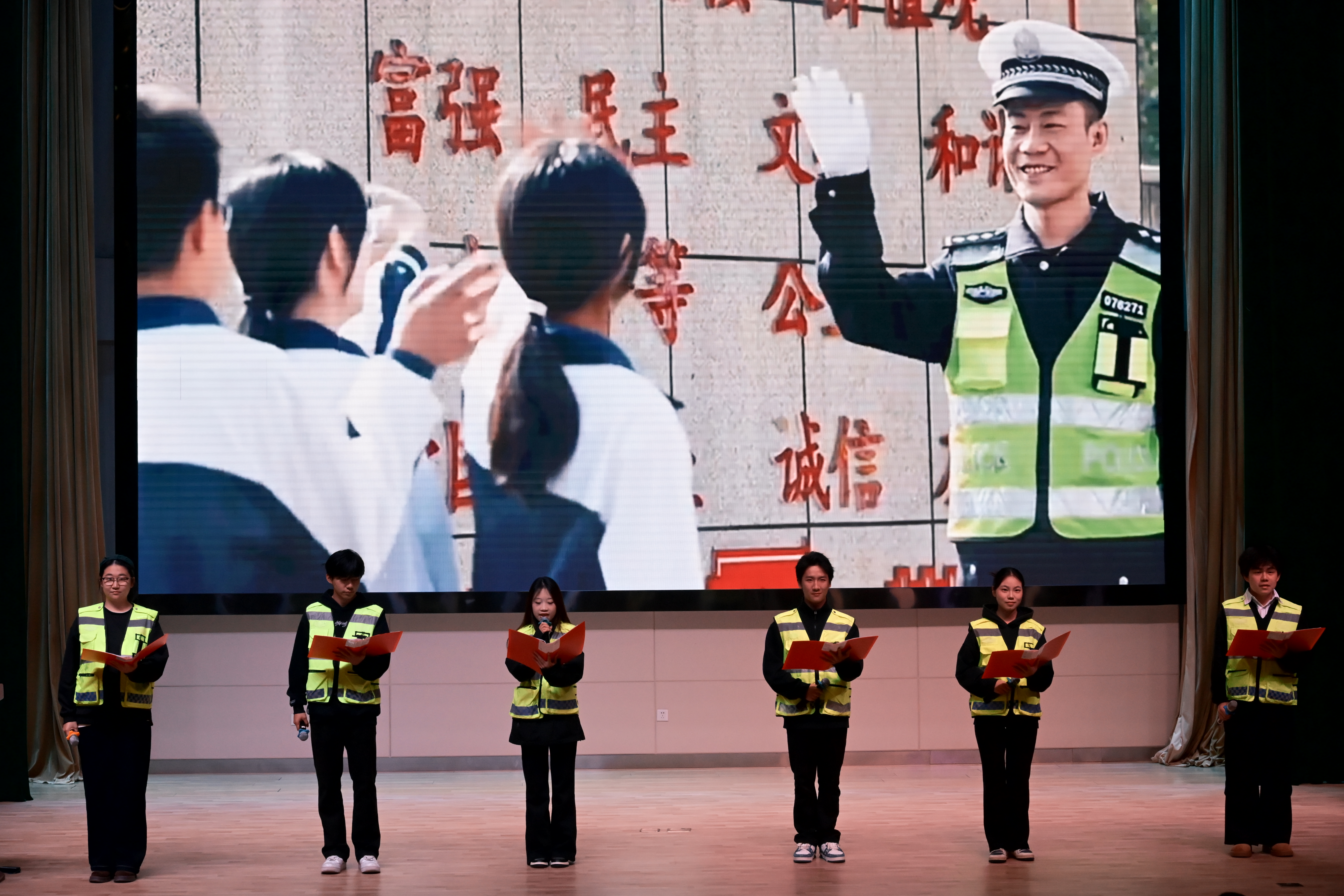 随后,主题宣讲与文艺演出在刘炽平报告厅正式拉开帷幕。江夏区分局交通管理大队民警以真实交通案例为切入点,详细科普酒驾醉驾、不系安全带、骑乘电动车不戴头盔、乘坐“老头乐”、“飙车炸街”等常见交通违法行为的法律后果与现实危害。宣讲过程中,民警以案说法、以情入理,让文明交通理念真正深入人心。