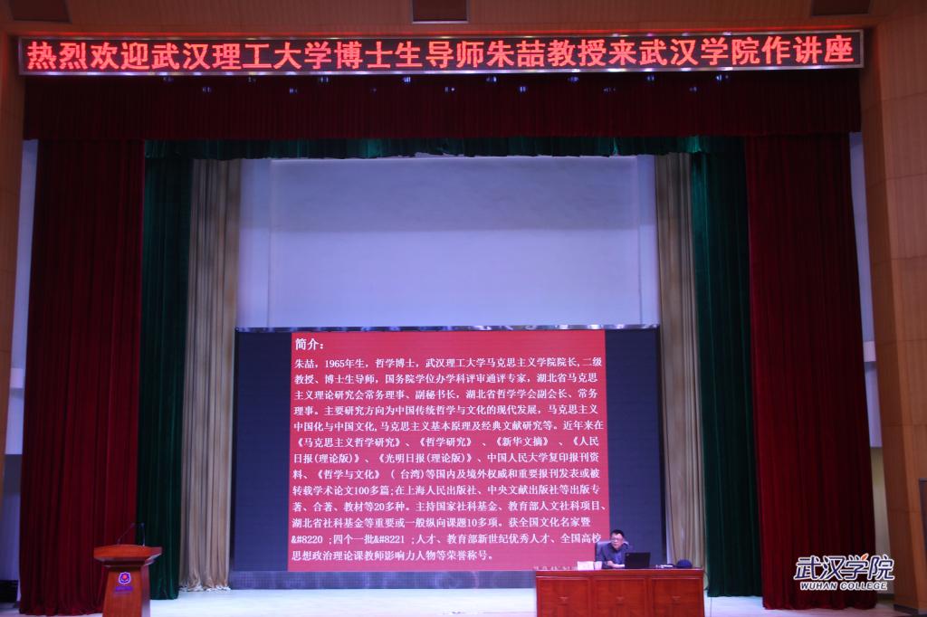 为提高师生人文素养,构建和谐校园文化,3月30日学校邀请武汉理工大学马克思主义学院院长、二级教授、博士生导师、国务院学位办学科评审通评专家朱喆老师作以《中华优秀传统文化之现代价值》为题的专场报告。通识教育课部主任何捷一及李运祥、卢厚家、夏劲、王利军等五位教授和三百余名师生参加报告会,报告会由李运祥教授主持。