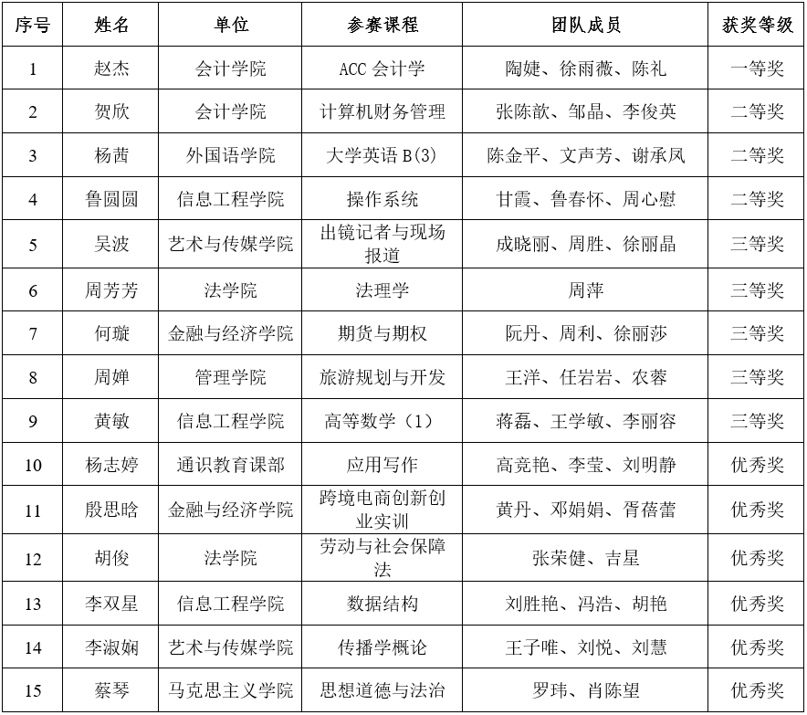 第六届教师教学创新大赛获奖名单