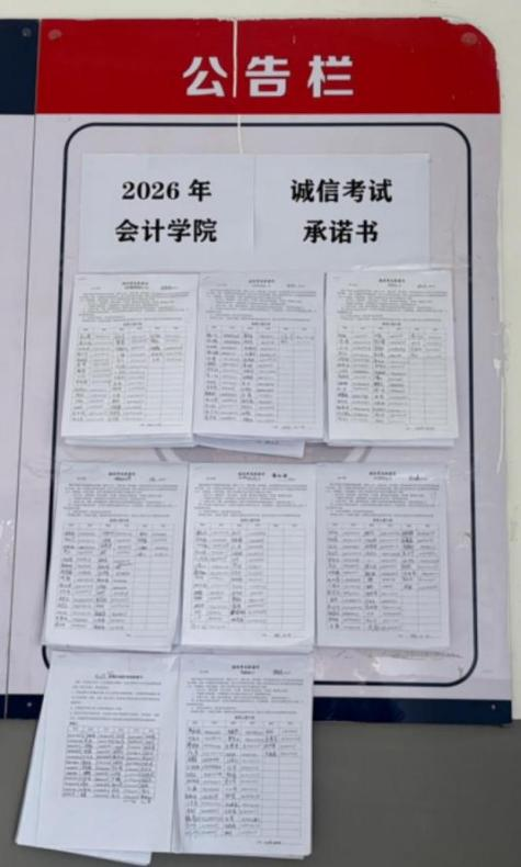 会计学院2025-2026学年第一学期期末考试近日圆满落幕。本次考试规模宏大,覆盖77个班级、121门课程,381个考场,9903人次实现“零舞弊”,为校园诚信文化建设写下了浓墨重彩的一笔。