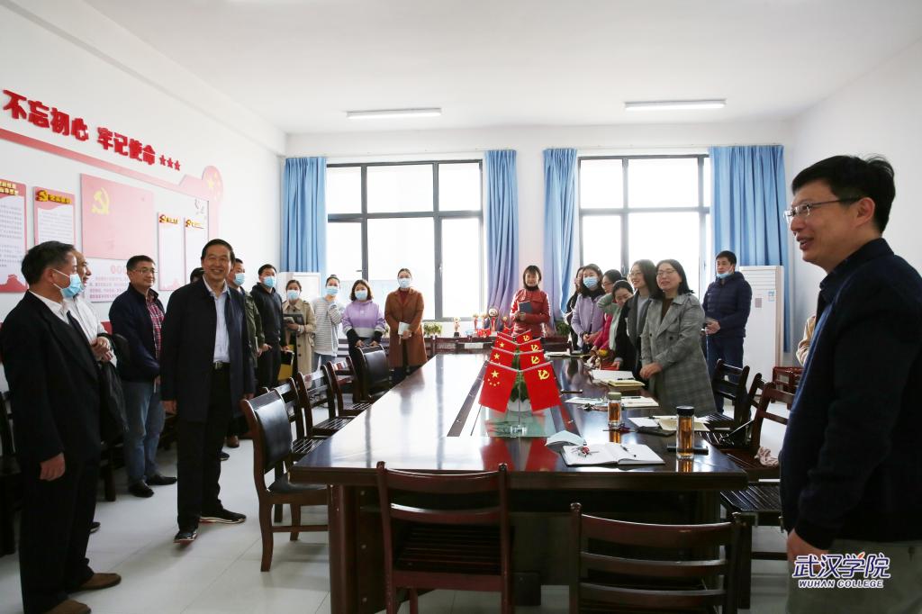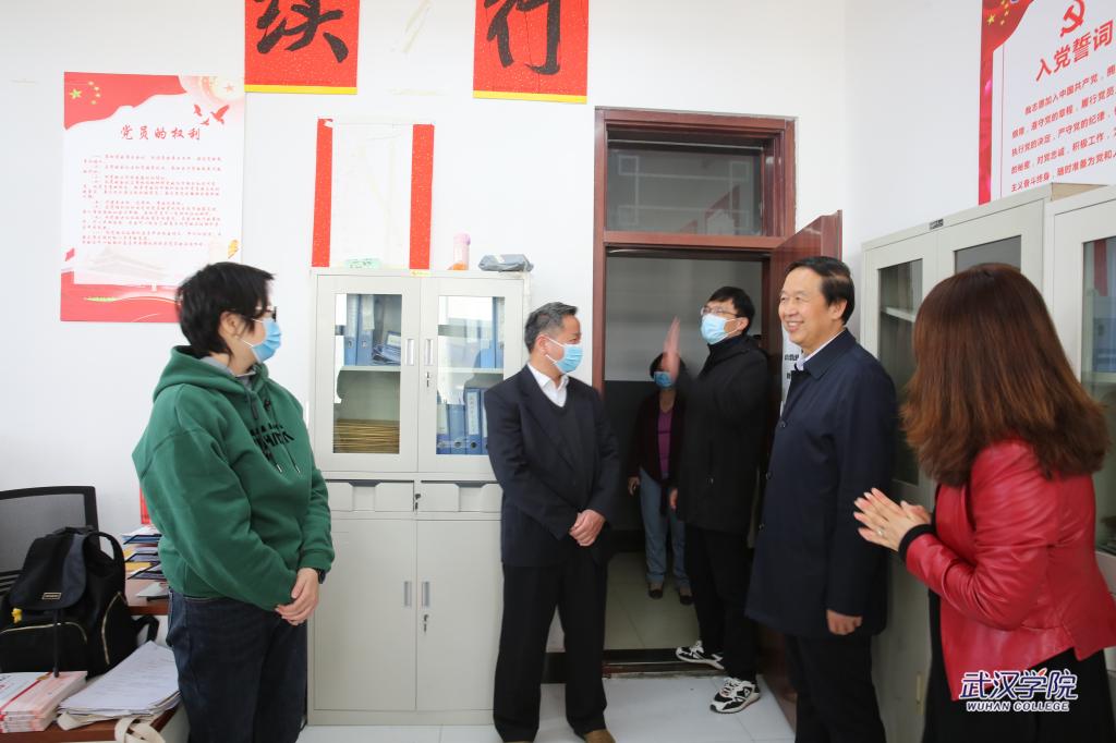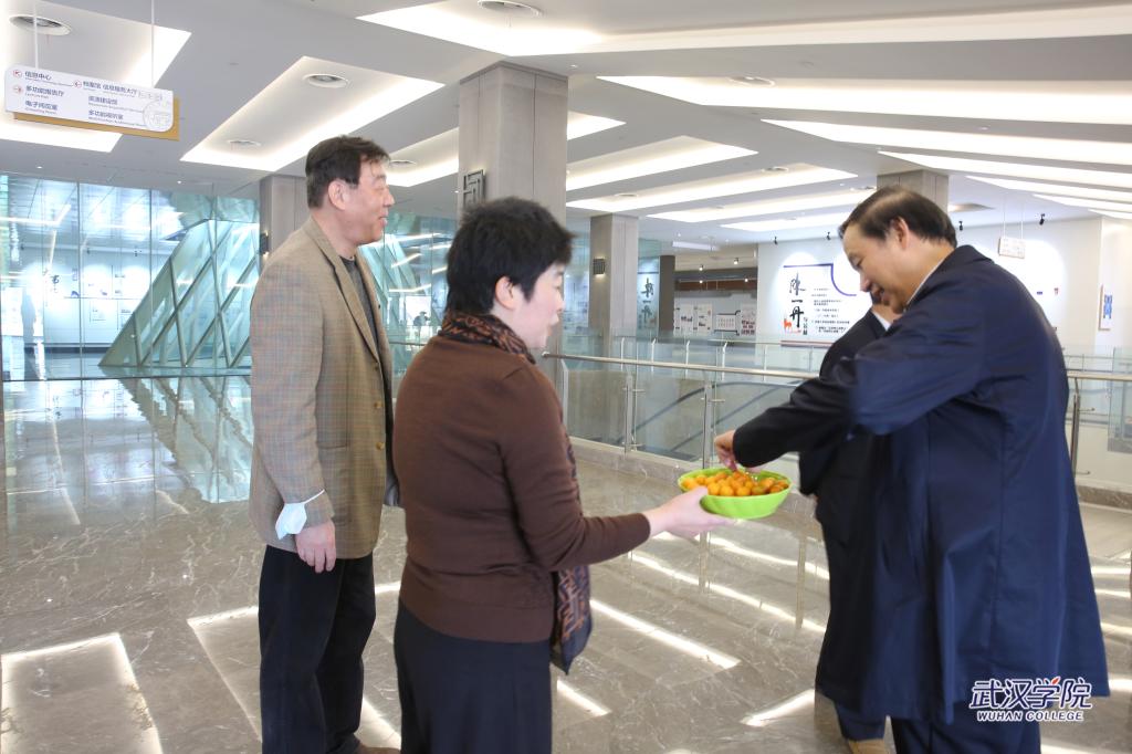 2月22日,PG电子官方网站校长李忠云、校党委书记陈祖亮、副校长郑祝君、鲁先发、周承早、黄保红一行前往各二级学院(课部)、职能教辅部门,走访慰问教职员工。