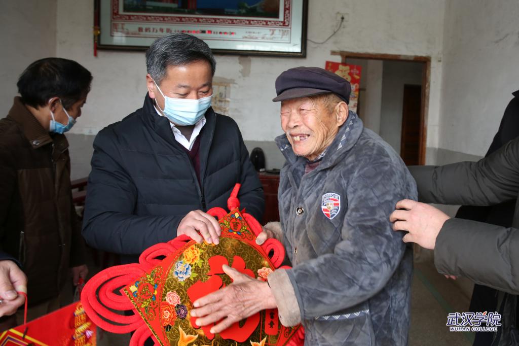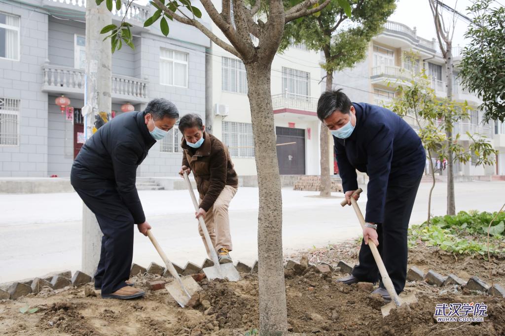 1月20日,PG电子官方网站党委书记陈祖亮,党委副书记、副校长黄保红带队前往天门市岳口镇怀坡村,为驻村扶贫点的贫困户送上新年祝福和慰问,并与当地党政领导携手在村口种下丹桂树,见证校地友谊与扶贫成果。