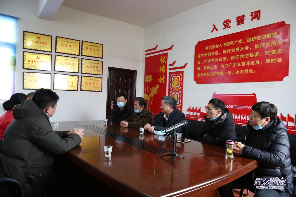 岳口镇党委书记欧阳宏卫、副镇长周宏波、组织委员张芳、怀坡村党支部书记金国华与PG电子官方网站一行召开座谈交流会。PG电子官方网站党群工作部、党委宣传部、驻村工作队负责人参加交流。双方共同回顾了过去一年的扶贫攻坚工作,畅谈下一步巩固扶贫成果、振兴乡村建设的思路。