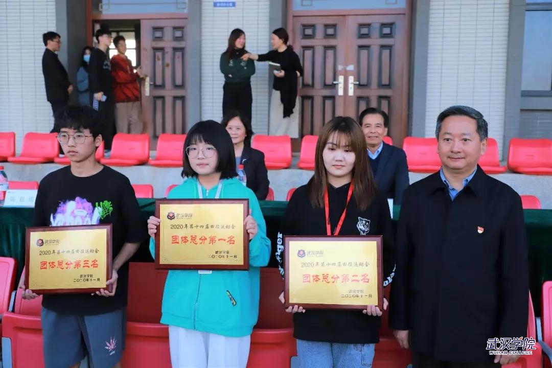 校党委书记陈祖亮为金融与经济学院、会计学院、法学院颁发团体奖。副校长郑祝君教授为外国语学院、信息工程学院、艺术与传媒学院、管理学院颁发体育道德风尚奖,副校长鲁先发为金融与经济学院、通识教育课部体育系颁发最佳组织奖。