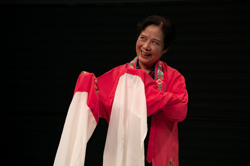 75岁的老艺术家袁忠玉不仅是著名汉剧演员,也是武汉市非物质文化遗产传承人。走上讲坛,她前一刻扮演杨贵妃,下一刻化身潘金莲,偶尔客串张飞也是惟妙惟肖,还示范了无实物表演喂鸡、抛媚眼、下楼梯,用经典唱段串联起汉剧知识,用生动的表演展现汉剧的魅力。她用讲故事的口吻分享自己幼时学汉剧的经历,讲述熄灯点香练眼神、隔楼唱戏练声音的方法。
