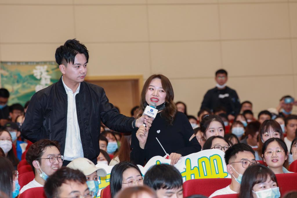 见面会伊始,三位主创在现场和同学们现场分享自己的家乡,对积极发言的同学赠送签名海报。最让人印象深刻的是法学院法学1803班的曾伦同学,他分享了《我不是药神》观后感,感受到了中国法律的情与法,并萌发学习法学的念头,今后要走上法律岗位,立志让中国不再出现第二个程勇,要让公平与正义走进所有人们的内心。