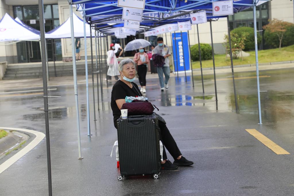 清晨的秋雨淅淅沥沥,校园内搭起了成片的帐篷,供新生和家长避雨。