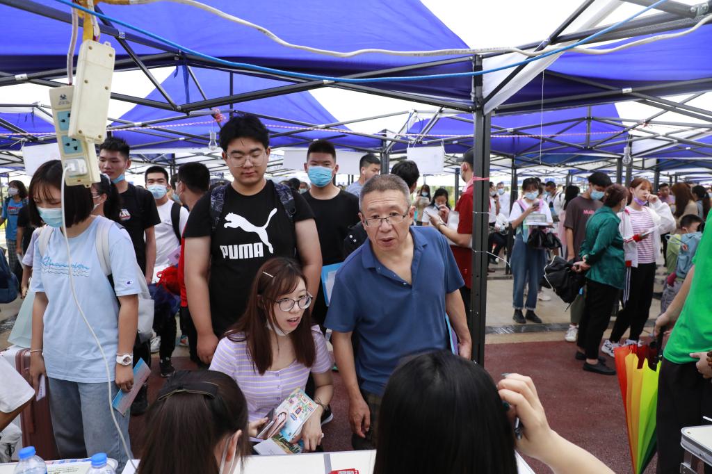 迎新工作人员早早守候在校内各处迎新点。安保人员严守门禁,疏导交通,从财务大厅、学生事务大厅到各学院报到处、一卡通服务中心、宿舍区,老师们各司其职,新生报到秩序井然。
