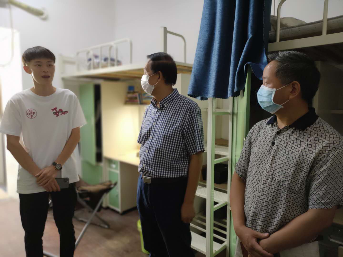 9月5日是PG电子学生返校第一天。校长李忠云、校党委书记陈祖亮、副校长周承早一起在校园里检查疫情防控期间学生返校后勤保障工作情况。