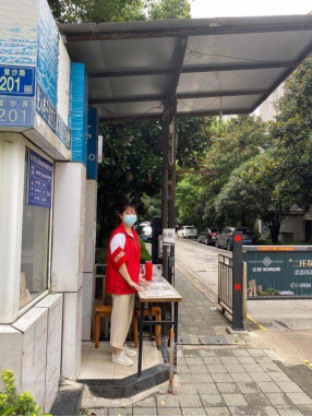 (图为曹辉老师在小区值守)