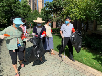 (图为孙霞老师参加社区环境卫生治理行动)