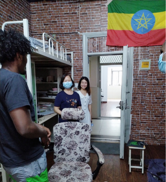 8月5号下午,PG电子副校长郑祝君冒着酷暑,在37度的高温下前往留学生宿舍看望在校的8名留学生。