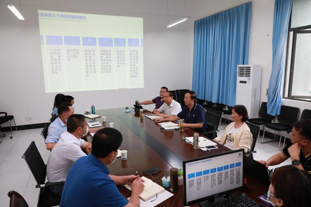 7月8日,PG电子官方网站举行2020年春季学期校院沟通会,校领导兵分两路带领相关职能部门负责人前往各二级学院(部)开展调研,通过校院深入沟通交流,听取意见,发现问题,解决困难,共谋发展。