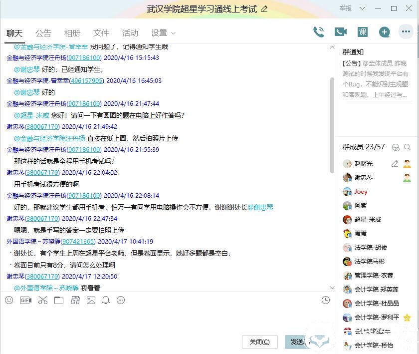为保证考试正常进行,超星公司课程顾问在整个考试期间提供了有力的技术支持和保障。本次线上考核工作,包含毕业班和非毕业班的补缓考和重学重考,近300门课程参与线上建卷工作,共计约4000人次参加考试。