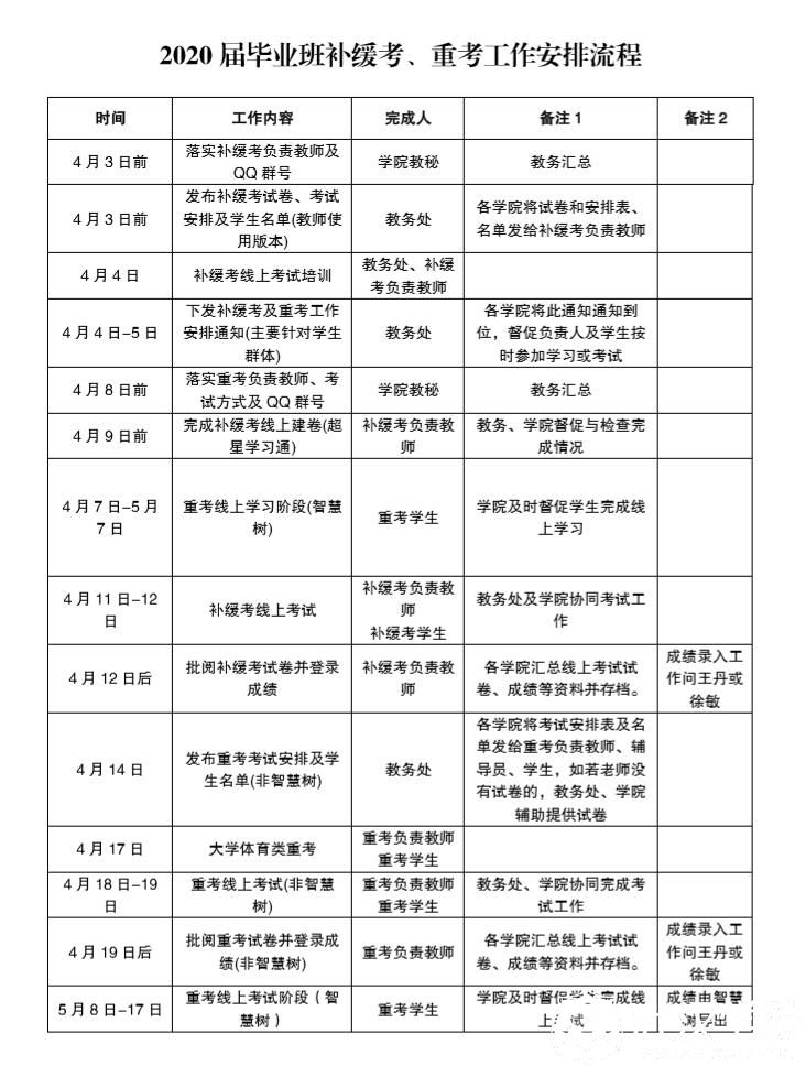 毕业班补缓考、重考工作流程安排