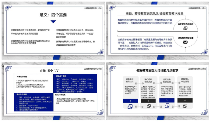 会议指出,开展教育思想大讨论是适应新一轮科技和产业革命及高等教育改革发展的需要;开展教育思想大讨论是总结过去,面向未来,准确定位,科学谋划学校事业发展“十四五”规划的需要;开展教育思想大讨论是动员全校师生员工齐心协力做好迎评促建工作的需要;开展教育思想大讨论是更新教育思想观念,推动教育教学改革的需要。