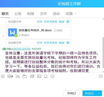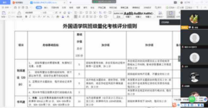 此外,外国语学院团学联的学生干部也率先在学生组织例会上带头学习班级量化考核制。以身作则,率先垂范。团学联纪检部作为班级量化考核管理制执行的统计部门,格外重视对制度的学习,纪检部部长刘欣怡同学说,只有我们自己认真学习制度,严格执行制度,做到公开公正公平的统计工作,才能使这项制度落到实处,才能真正推动我们学院的学生工作。