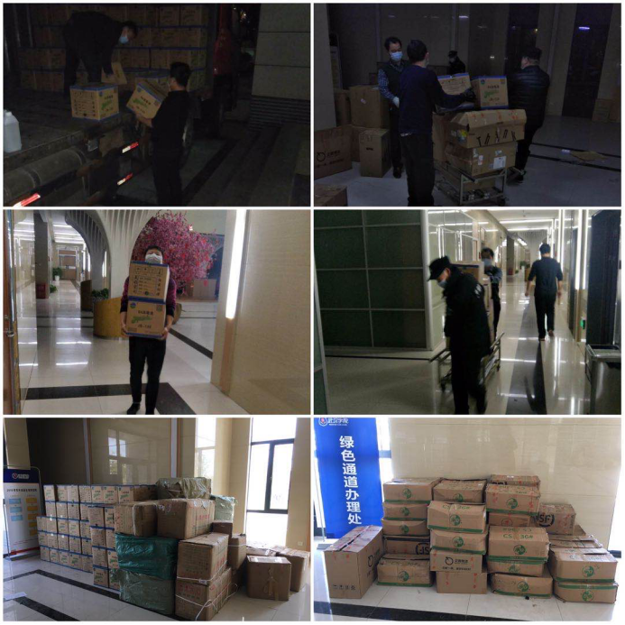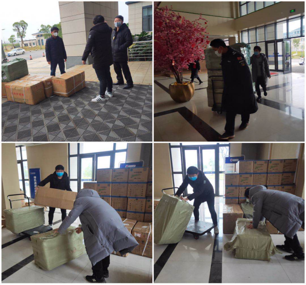 由于物资较多,凌晨时分金地物业工作人员熊甜把正在熟睡的同事组织起来一并进行卸货,并安置防疫物资。这些防疫物品来之不易,将用于保护留守校园的后勤物业人员和留学生,也是学校开学防疫物资的保障储备。