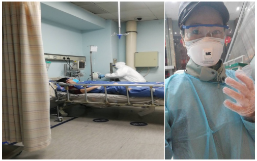 罗琳洁老师在医院照顾家人(左图)及做志愿者(右图)