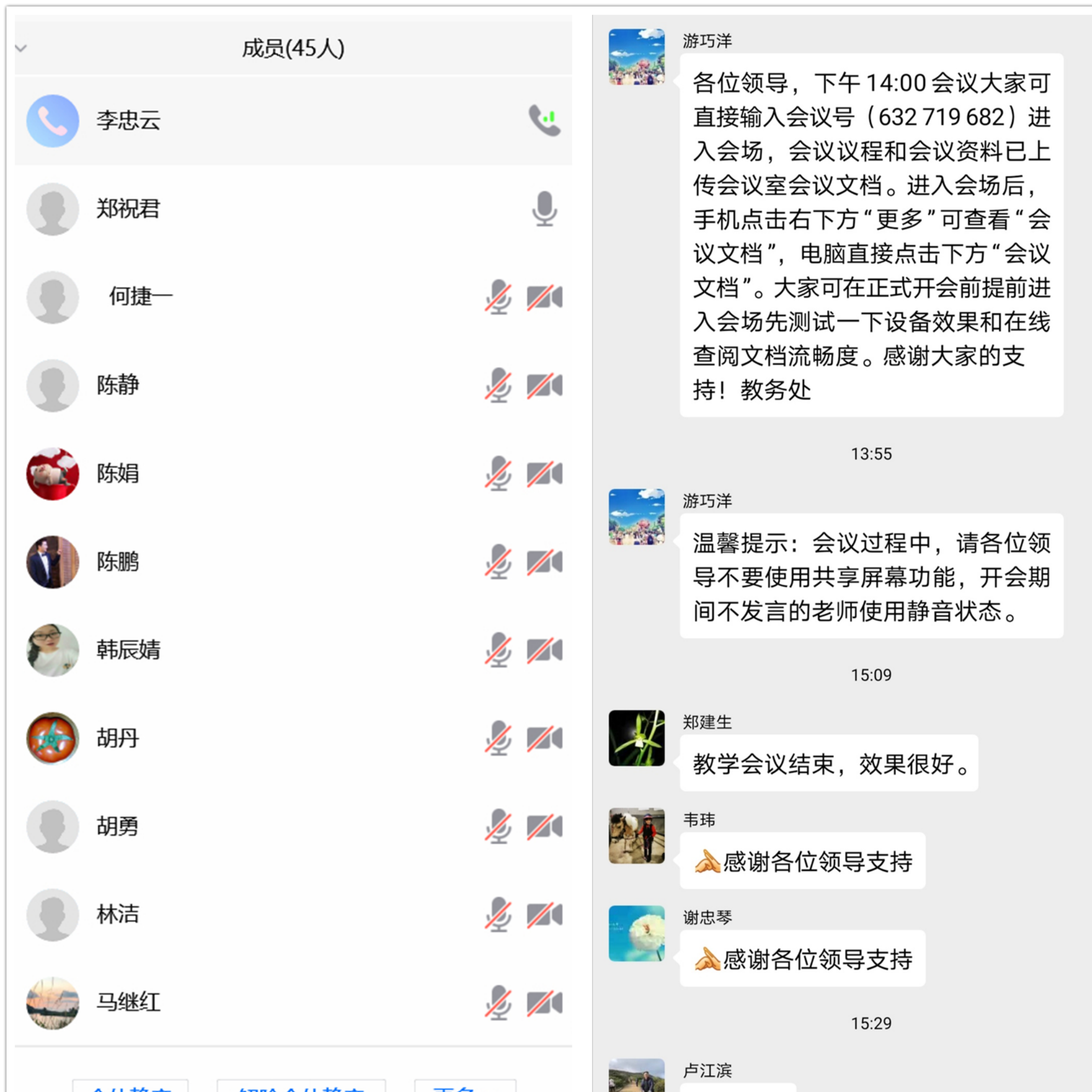 教务处和各院(部)教学队伍在群里积极讨论在线教学事宜