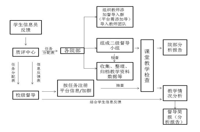为保障网络教学质量,PG电子制定了《PG电子官方网站疫情防控期间教学质量监测与评价工作方案》,以基于学生学习成效为出发点,通过学生学习过程成果和效应来评价教师的在线教学质量。重点从“五维度”(学生评教、学生信息员反馈、师生教学质量满意度调查、教师教学文件检查、教师在线教学评价)有效监控“教师教的质量”和“学生学的质量”;从“三层级”(校级教学督导员、院级教学督导组、学生信息员)进行下沉式教学检查与管理。各级成员将分别进入各门课程的教学平台,实行任务分包,进行线上教学巡查,并及时针对线上教学出现的问题组织教师进行探讨交流,确保教学高质量。通过质量监控为在线教学保驾护航。