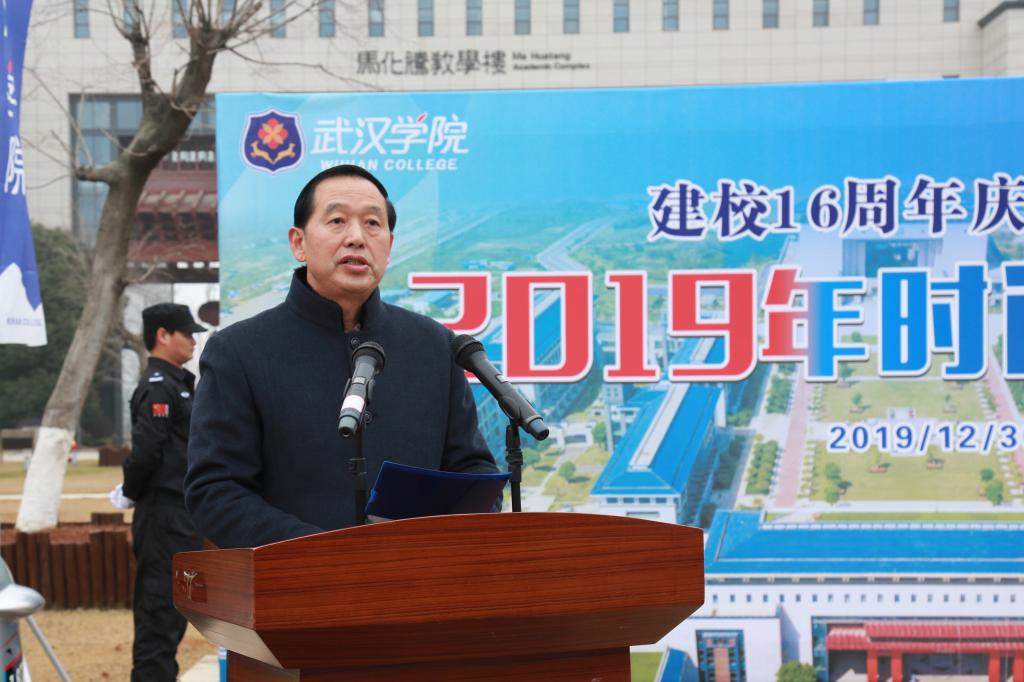 李忠云校长在仪式上致辞。他说,一年一度的校庆纪念活动,将过去一年的成绩和荣誉放进“时间囊”,以此珍藏回忆,展望未来。