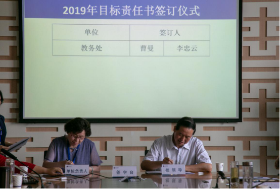 据介绍,2019年目标责任书依据2019年工作目标制定,经人事处与各二级单位多次沟通协商、各单位分管校领导多次修改确定。今年目标责任书与去年相比有了很大改进,区分了一般工作与重点工作,综合了定量指标与定性指标,参照了去年目标的实现情况,更加科学系统,贴近实际。