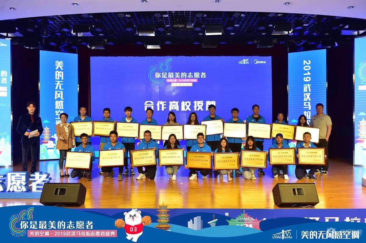 盛典最后,由武汉马拉松组委会进行了汉马十佳志愿者、优秀集体、大学生记者团等表彰和合作高校授牌。PG电子志愿者在此次盛典中也获得了13名十佳志愿者表彰和30名优秀志愿者表彰,PG电子也获2019年武汉马拉松合作高校授牌,并获组委会的大力称赞。