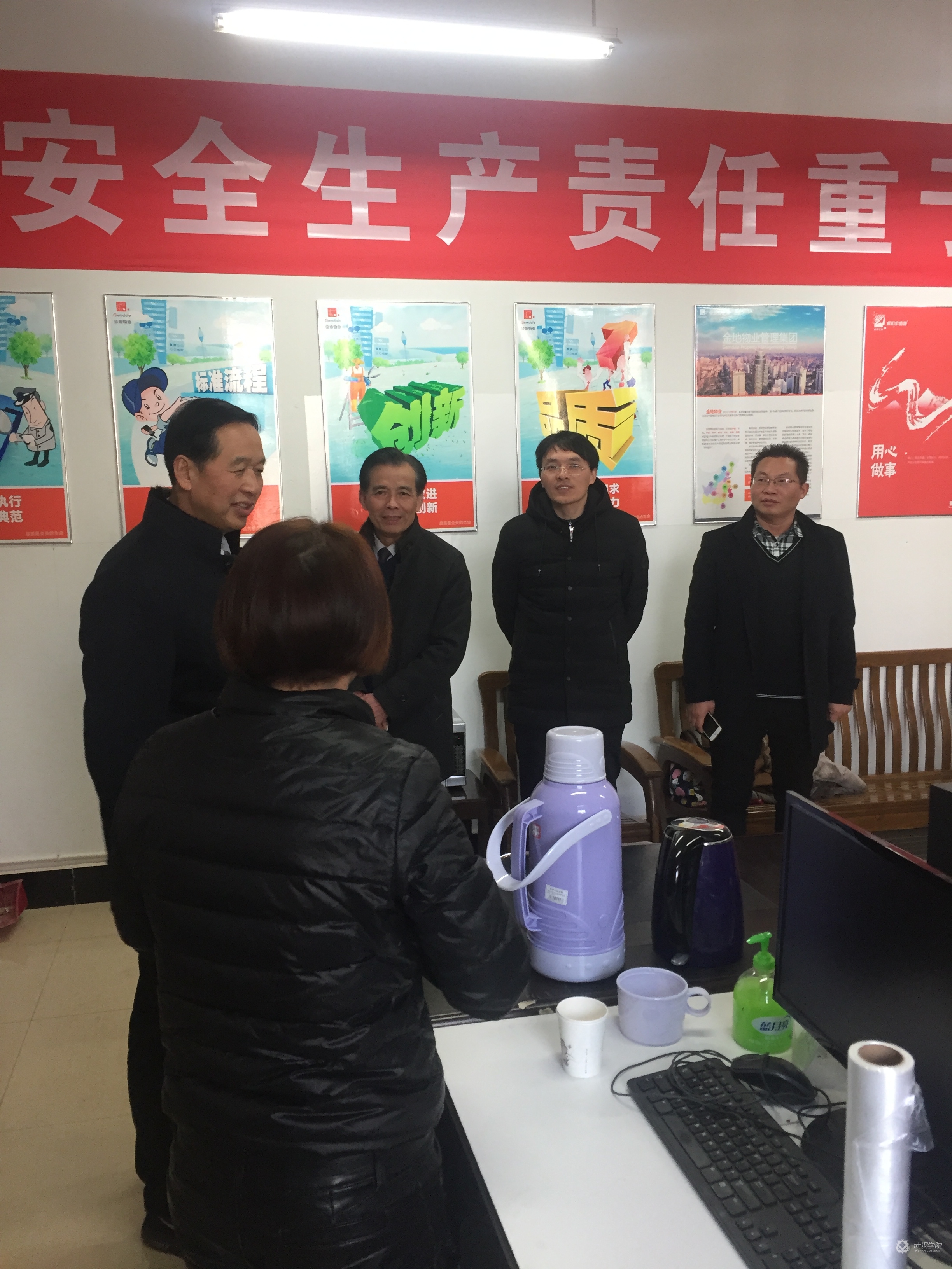 李忠云校长一行先后来到人事处、监察审计处、财务处、物业管理服务中心、国际学生公寓、基建处等地走访慰问,检查寒假期间学校后勤保障、公共安全等情况。每到一处,李忠云校长都热情地与值班人员亲切地握手,关切询问值班人员的生活工作情况,并代表学校向大家致以亲切问候和诚挚的感谢。