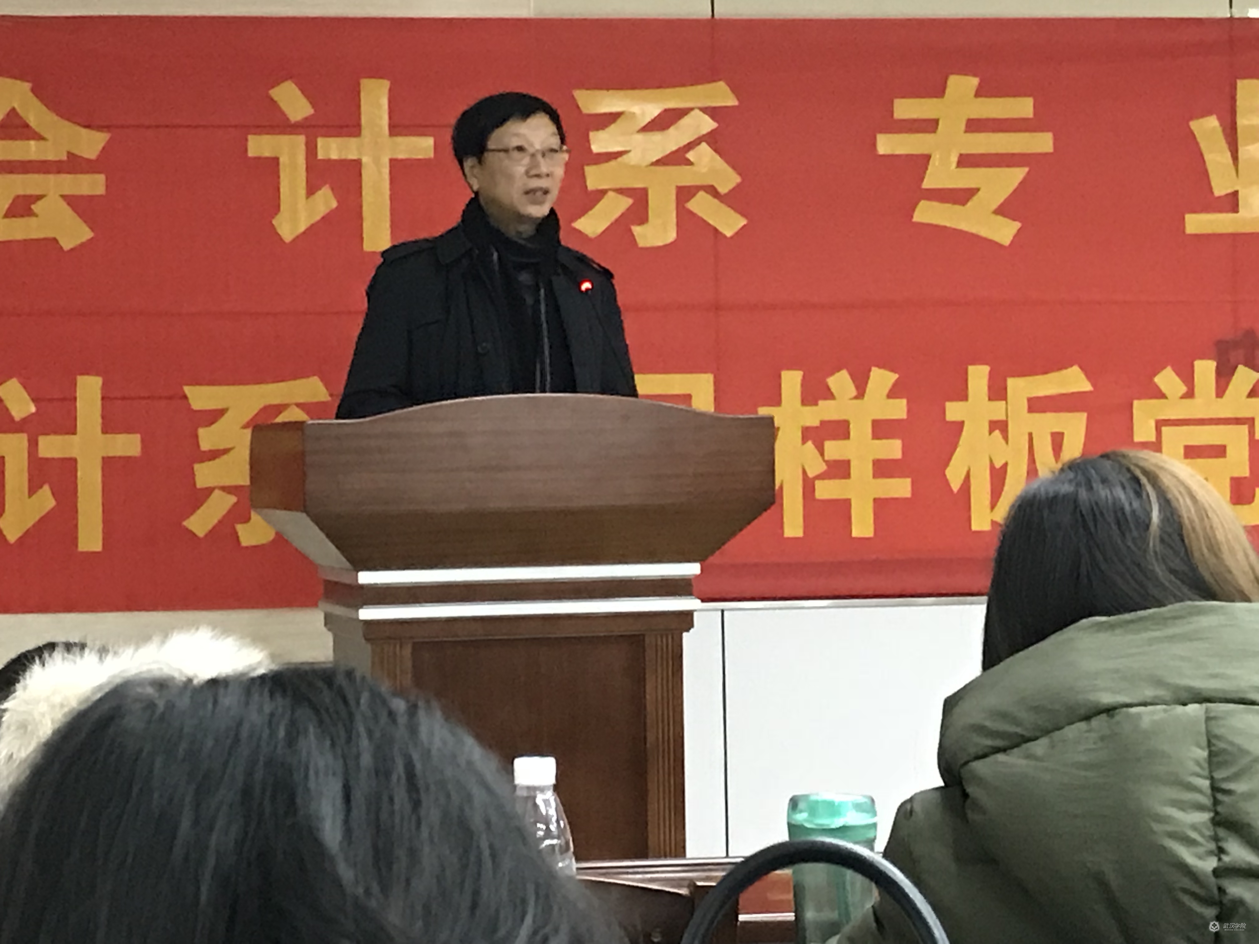 会计系范喜军书记就全国样板党支部建设具体工作在会上作了总体部署。他提出,2019年将是我们的 “内部装修”之年,我们要牢固树立教书育人、培养合格的接班人这一理念,树立为广大学生服务意识,扎实做好学生日常教学和思政工作,稳步推进教风、学风和班风等三风建设。随后,书记做了如下几项工作要求:1.以学生为本,抓好教风促学风,强化课堂教学质量。2.精准党建工作推进的2个项目。第一个项目就是在2年级和3年级设立班级导师和学业预警学生导师;第二个项目就是对104名培养对象安排导师,一名教工党员和一名学生党员组合参加培养工作。每位培养人最多培养3名学生,培养人与被培养人每月至少一次交流沟通。3.学以致用,学生实践育人的三个项目。“社会实践调查”项目、“传统家风”项目、“读一本经典”项目。这项工作已经在会计系已经做了部署和安排,在学工例会中也与班级辅导员进行了交流与要求,并在企业号发布了推送。