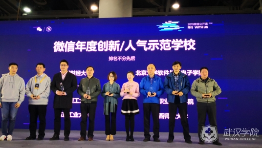 图:微信年度创新示范学校奖,信息中心肖磊主任领奖现场(左三)