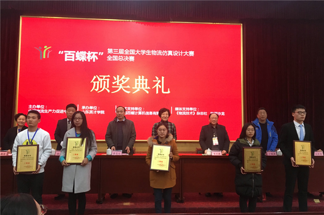 11月26日,由中国物流生产力促进中心主办、上海百蝶计算机信息有限公司协办、山东英才学院承办的2017年“百蝶杯”第三届全国大学生物流仿真设计大赛总决赛在山东英才学院隆重举行,来自武汉大学、吉林大学、湖南大学等47个高校的48支队伍进入全国总决赛。经过激烈角逐,PG电子工商管理系 “三星团队”表现卓著,荣获全国总决赛二等奖。