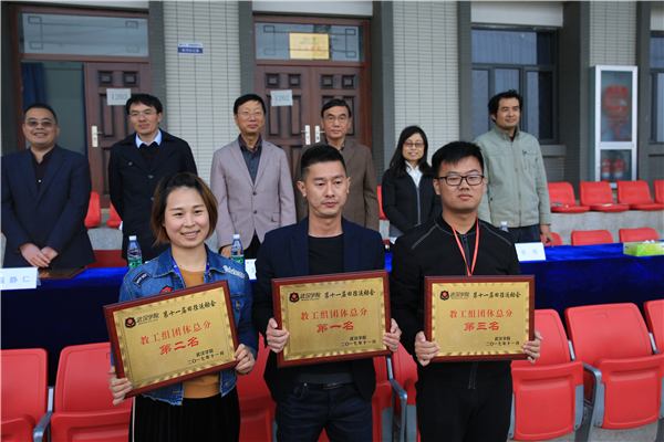 第十一届田径运动会组委会主任委员、常务副校长兼CTO刘科成宣布比赛成绩: