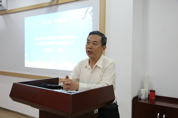 党委工作部部长范喜军以“切实加强民办高校党建工作 充分发挥党组织政治核心作用”为主题,分析了民办高校党建工作的主要特点,介绍了近年来民办高校党建工作中的各类创新实践,提出要紧紧抓住高校党建工作的落脚点、着力点,强化三个理念,划清“四条”界限,坚决抵制各种错误思潮,加强大学生思想政治教育工作,全力推进民办高校党建工作。
