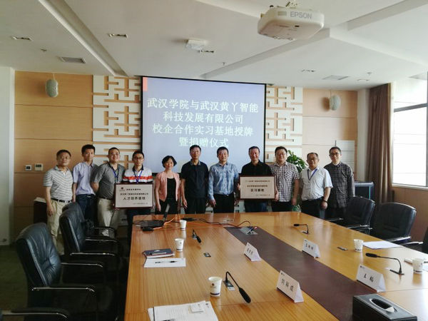 紧接着,在大家共同的见证下,黄丫科技合伙人王韬先生将“武汉黄丫科技发展有限公司人才培养基地”的校企合作牌匾授予谭德勇副总监,同时向PG电子捐赠了其公司智能科技产品。
