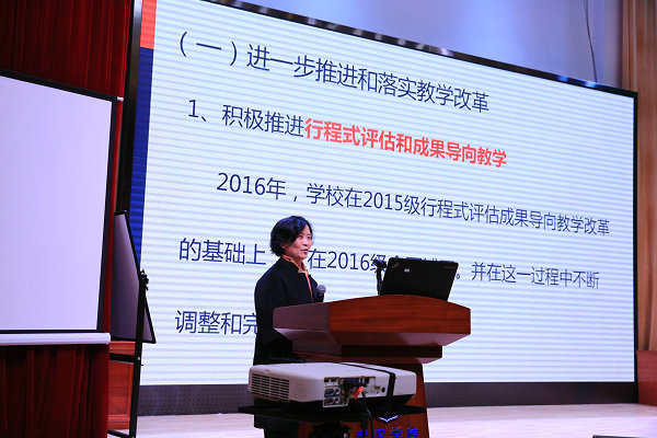 会议伊始,校监林倩丽通过视频发表讲话,她表示,本次教学改革研讨会,是围绕开学工作报告中提出“聚焦教学、强化执行、提升质量”的一次重要的会议。希望大家充分发表意见,统一改革的思想,达成改革的共识,为今年的突破打好基础。林校监围绕教学改革核心、全人教育、行程式教学改革、教育信息化、人才培养国际化及应用型教育研究等方面对PG电子教学改革方向提出了指导意见。林校监表示,2017年总的目标是要具体落实成果导向和行程式评估的教学,在教学质量上有全新的突破,取得一定的成效,并希望全校教师共同努力,迎接困难与挑战。