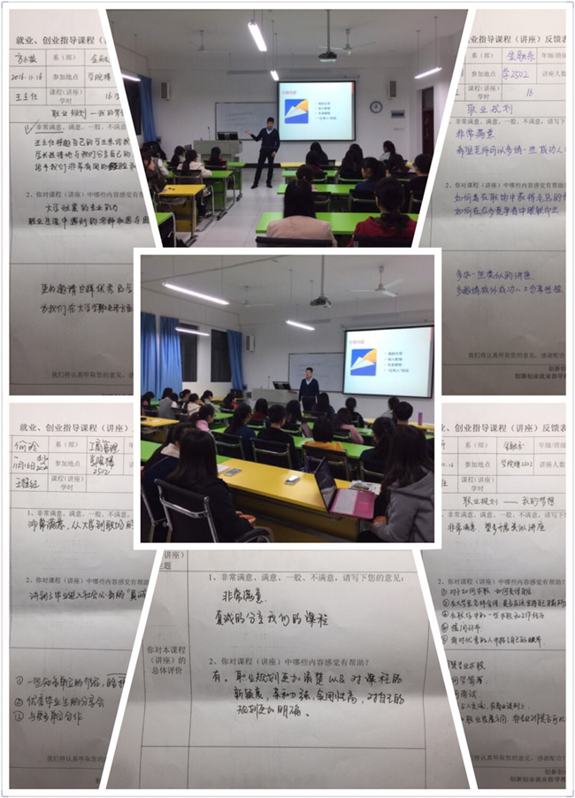 创新创业就业指导教研室30余名专兼职教师通过师生人脉资源,分别邀请企业高管、职场精英、成功校友、学生楷模及经验丰富、阅历丰富的专家学者进课堂,为3100余名2015级学生打造了一场“过来人”的分享盛宴。这种同课异构的教研方式为学生带来全新的体验。