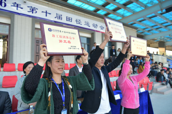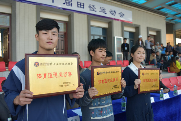 吴书记宣布本次运动会“体育道德风尚奖”,获得该奖项的有:信息及传播学院——传播系、艺术设计系、法律系。