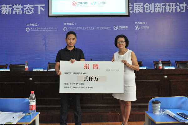 随后,本次“校企协”向湖北省各高校捐赠累计2000万财税专项学习费用,由中国总会计师协会会计师分会常务理事、汉唐教育集团财税事业部总裁苏致远先生授牌,PG电子官方网站林倩丽校监作为高校代表接受捐赠。