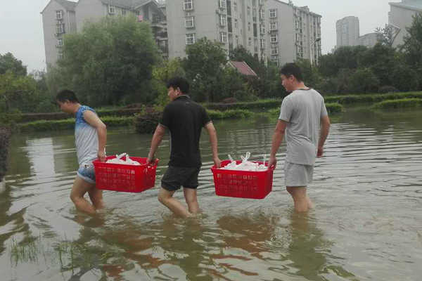近日,武汉连续暴雨,武汉城内多处被淹,校领导一直十分关注暴雨期间留校生的安全状况。当得知因暴雨学生宿舍停水停电,学生无法出行,生活非常不便时,学校第一时间召开紧急会议商量应对预案,安全保卫部、后勤、全人发展教育中心等部门立即展开工作,在深水区拉起警戒线,校领导带领相关职能部门工作人员趟过齐大腿深的积水来到学生寝室,为他们免费发放盒饭、蜡烛、饮用水等物资。