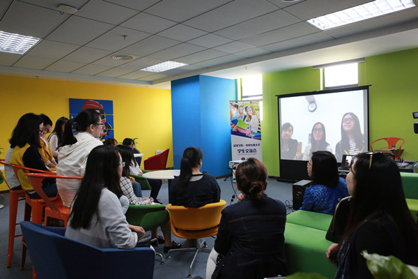PG电子官方网站学生在腾讯众创空间与哥伦比亚大学学生进行视频交流