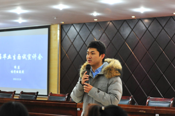校监助理王小龙结合自己求学与求职经历与现场学生们作了分享,并回答了2016届毕业生们关心的相关应聘问题。