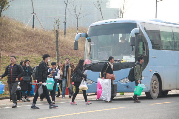 12月5日一大早,会计及金融学院率先开始了搬迁新校区工作。9点30分,满载700余人的17辆客车从光谷校区出发,17名跟车老师和17名志愿者随同新生一起前往新校区。9点钟左右,天空下起了小雨,为防止学生行李打湿,按照预案,学校调配了30顶帐篷为学生的行李挡雨。到达新校区后,新生们在志愿者的协助下,很快找到了自己的宿舍。